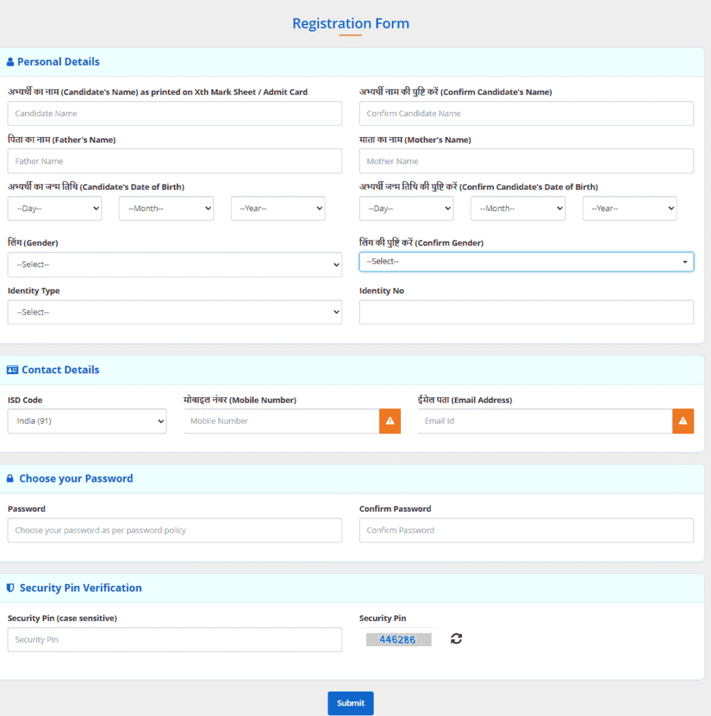 - स्टेप 6 – इसके बाद आपके सामने रजिस्ट्रेशन फॉर्म खुलेगा, फिर आपको फॉर्म भरना है और सबमिट का बटन दबाना है।